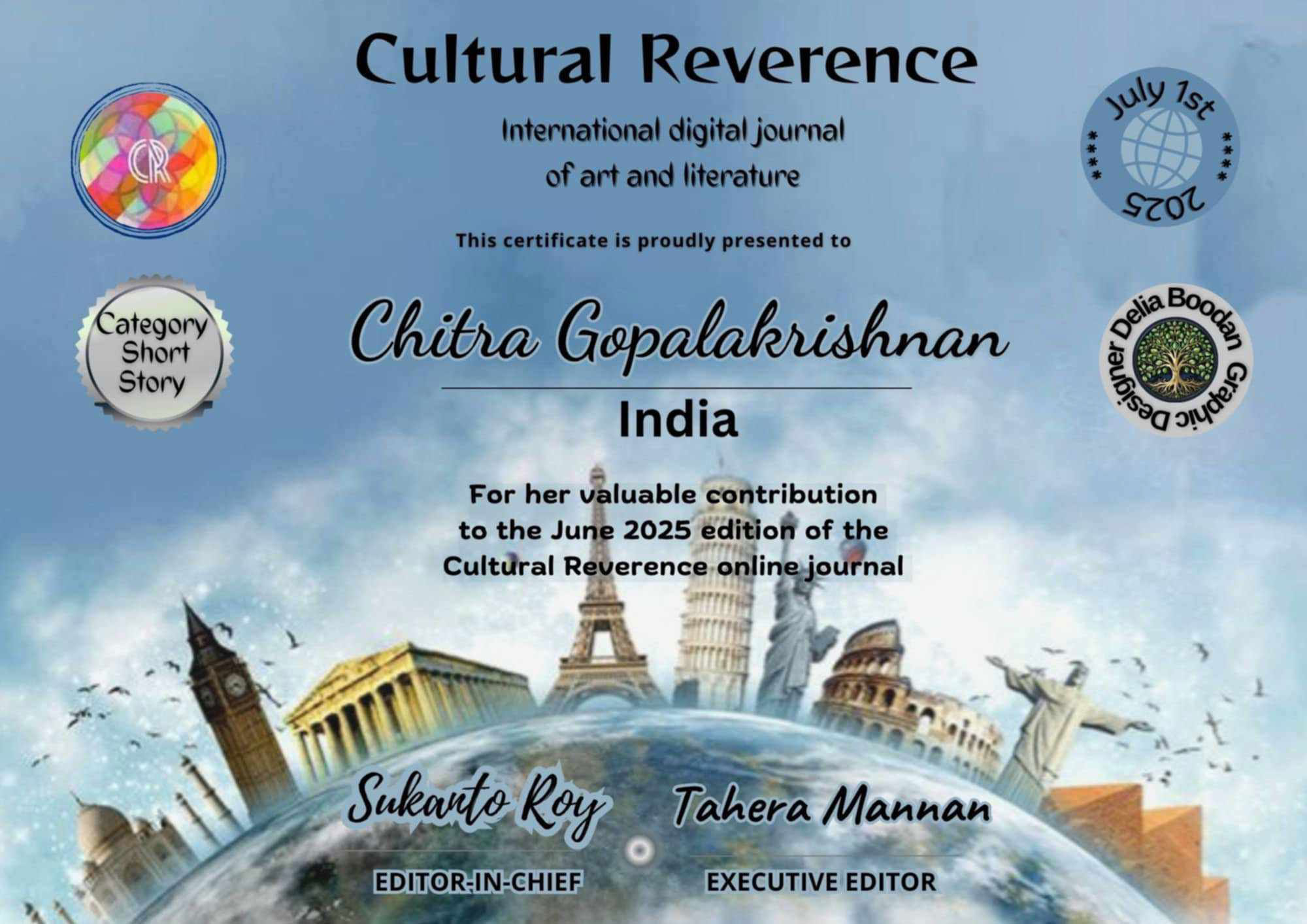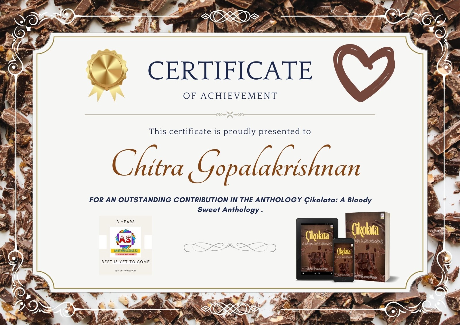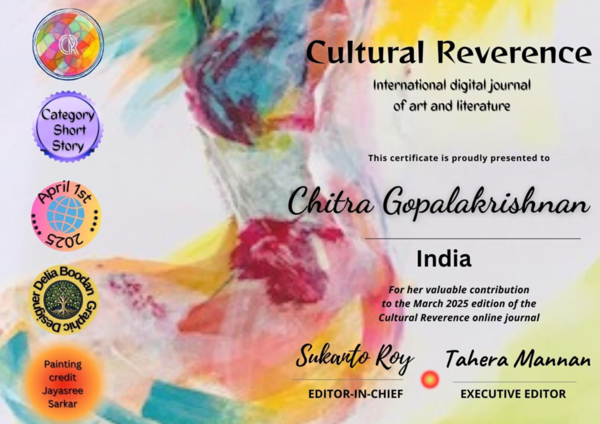 Recognition to Chitra has come in the form of winning story contests, an award for her contribution to development journalism, being a juror of a flash fiction contest and being a guest editor for a prestigious online literary journal.